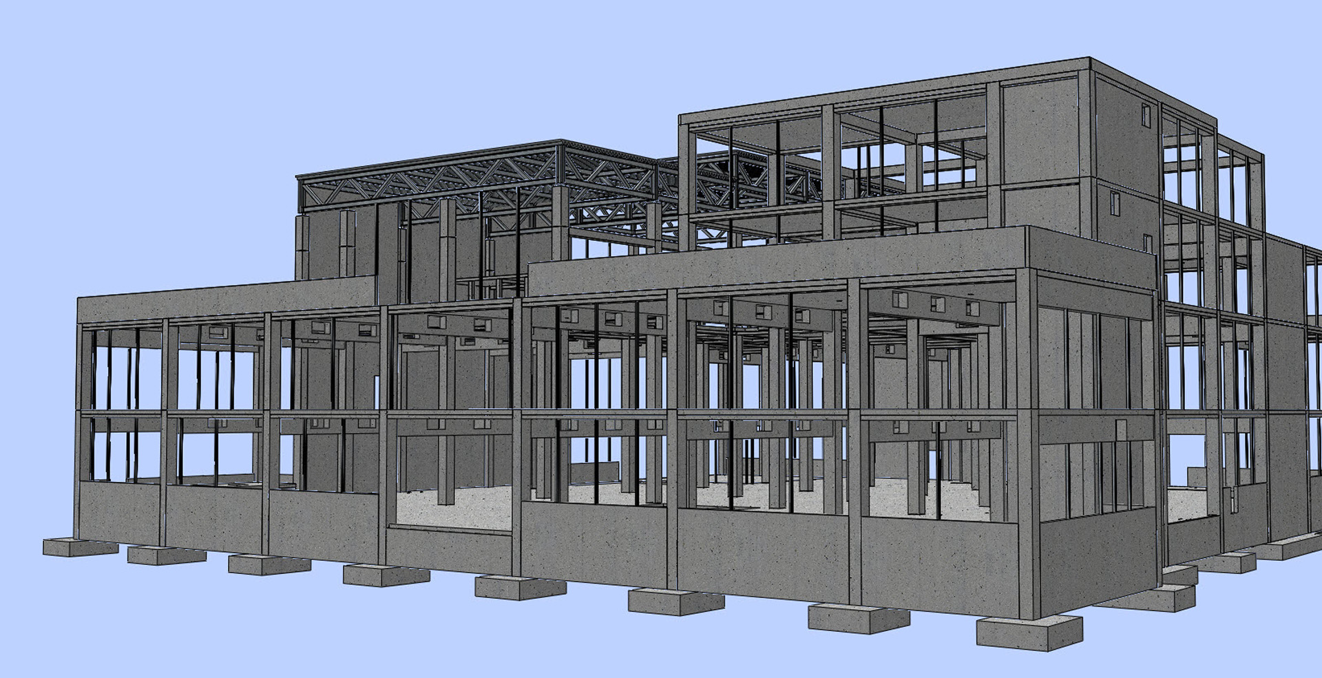 Na zadnjoj etaži građevine predviđena je kino dvorana iznad koje se izvodi čelična rešetka. Tlocrtne dimenzije krova kina iznose 20,45 m x 41,0 m. Konstrukcija se sastoji od jednostavno oslonjenih glavnih rešetkastih nosača, podrožnica i uzdužnih stabilizacijskih rešetki. Glavne rešetke su jednostavno oslonjene na betonske stupove, raspona 20 m na međusobnom osnom razmaku 8,2 m
